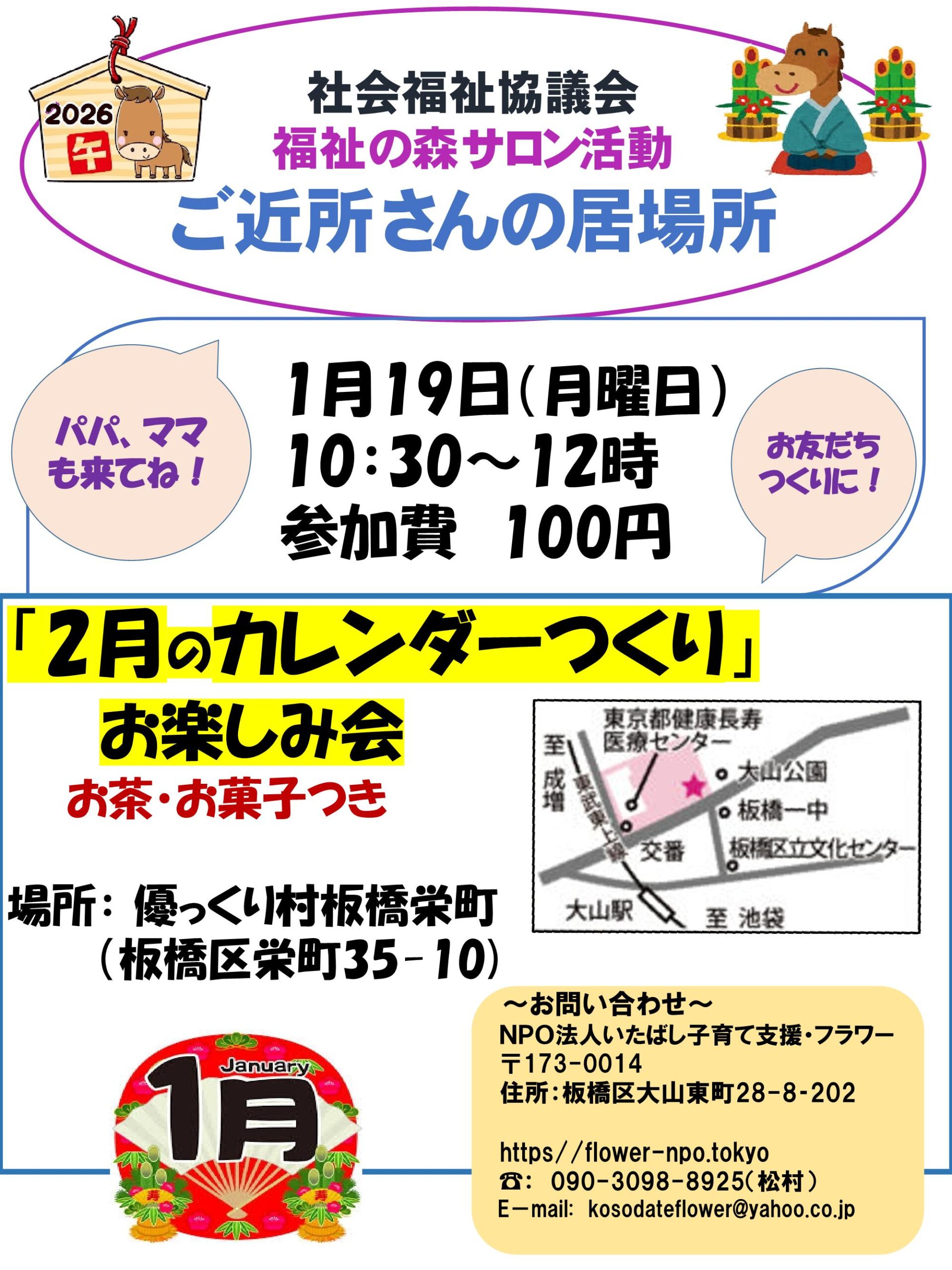 令和8年1月は、12日(月)・19日(月)10:30~12時