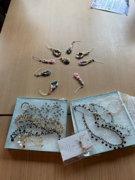 【報告】福祉の森サロン「ご近所さんの居場所」2025.10.6 2025年10月9日 最終更新日時 : 2025年10月9日 サイト管理者 10月6日10:30〜12時 優っくり村板橋栄町交流スペースで実施しました。 今回は13人の方々がいらっしゃいました。皆さんいつもの様に、お喋りを楽しみながら参加しました。 今回は、ビーズで可愛いチャームを作りました。いろいろなビーズを選んで糸に通し作りました。 色とりどり素敵なチャームが出来て、 とても嬉しそうに「かばんに付けようかしら」「キーホルダーにしようかしら」「携帯電話に付けようかしら」などなどお喋りが弾んでいました。 *一部の方々の作品と写真を紹介します。