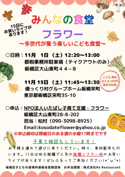 日頃からフラワーの子ども食堂をご利用いただき有難うございます。
