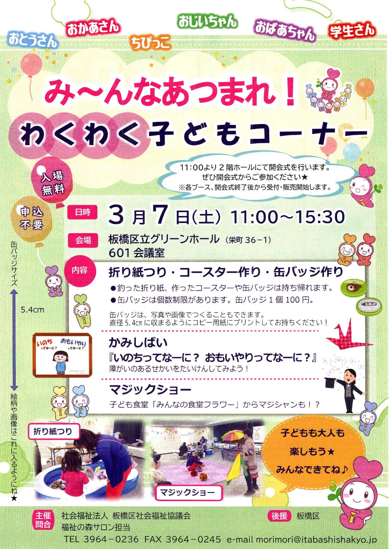 3月7日(土)11:00〜15:30、板橋区グリーンホールで、社会福祉法人板橋区社会福祉協議会主催による 第16回 福祉の森サロン「交流フェスタ」が開催されます。