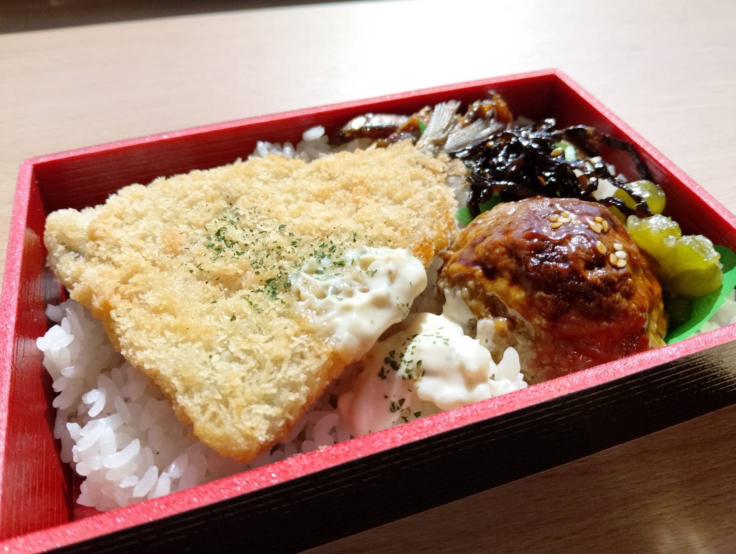 今回は、アジフライ、つくねのお弁当です。