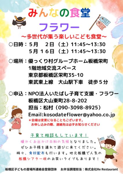 「みんなの食堂フラワー」5月のお知らせ新着!!